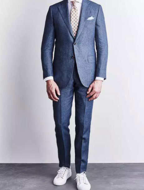不想常規西裝套裝搭配,那就盡量不要選擇整套西裝搭配,這時我們可以選擇不同款式的西服單品來進行搭配,例如:藏藍色上衣外套,搭配灰色的西褲。如果想要套裝搭配,也可以選擇休閑的鞋子,比如板鞋或者樂福鞋等。