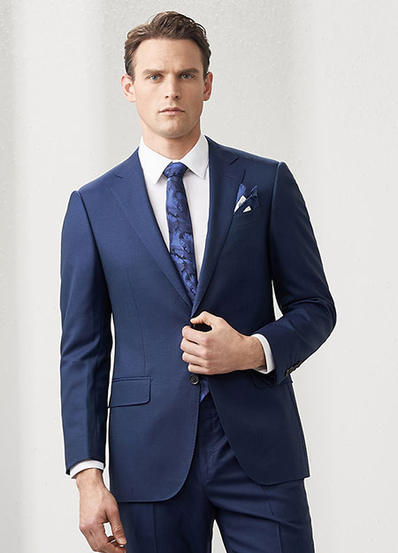 2、暗藍(lán)色西裝,可以配藍(lán)、胭脂紅和橙黃色領(lǐng)帶,穿白色和亮藍(lán)色的襯衫。