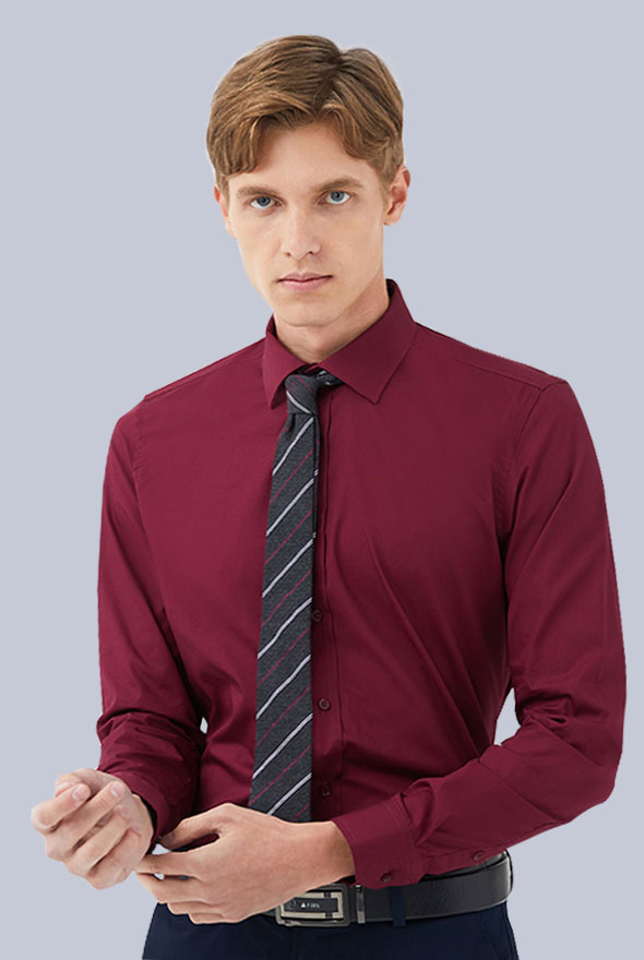 酒紅色商務休閑襯衫,時尚,干練不失大氣.