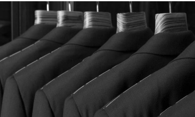 四、沾過汗液后,西裝久放很容易發(fā)霉,所以穿多的西裝在換季前需要干洗后存放。一般西裝上衣在穿著時里面都會有襯衫打底,所以如果穿的時間不長,上衣外套是可以不用洗。而褲子不同,褲子是貼身穿著的,很容易沾上汗液,所以哪怕只穿過一次,褲子也要干洗。純毛面料的西裝務(wù)必干洗,千萬不能水洗,否則衣服會嚴(yán)重皺縮,導(dǎo)致衣服報廢。干洗后塑料套要拆掉,使用無紡布衣套以達到透氣、防塵的效果。