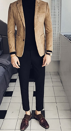 一身棕色的西裝搭配,自然不會出錯(cuò),并且能襯托出成熟男人的瀟灑魅力,但卻不太適合年輕的小伙子。對于年輕人而言,用棕色西裝搭配其他顏色的褲子和鞋子,可以輕松營造雅痞的休閑韻味。可以嘗試用深藍(lán)色的褲子和黑色皮鞋搭配棕色外套,雖然黑色和深藍(lán)色比較接近,但黑色的褲子搭配棕色外套,會讓人產(chǎn)生壓抑的感覺,是不建議的。